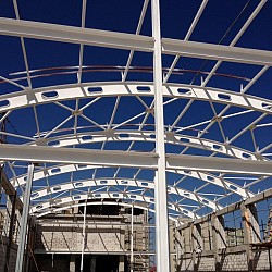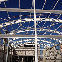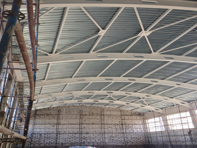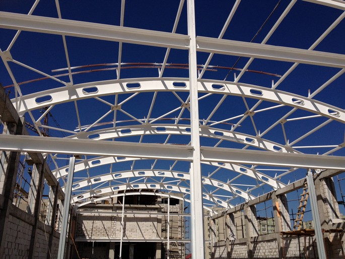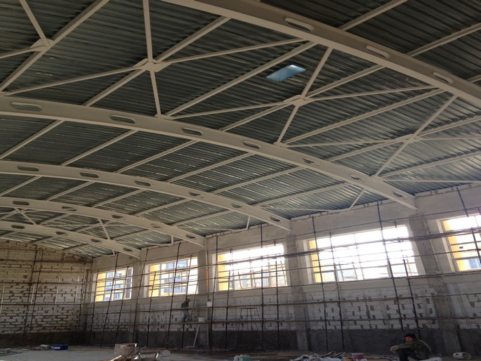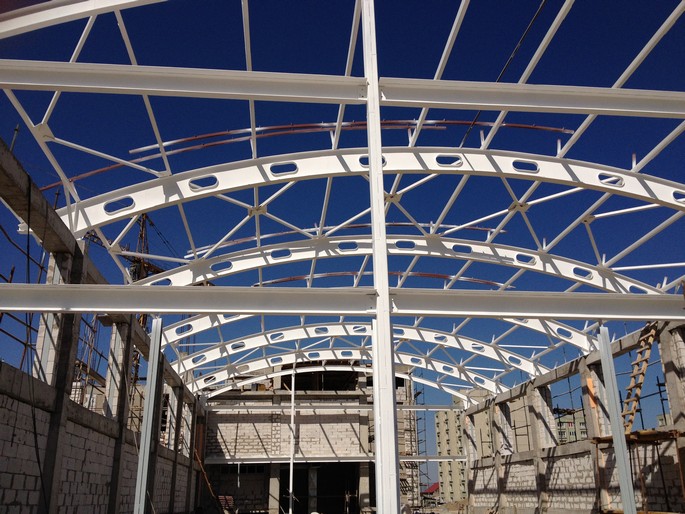 Construction of the roof of a 1,200-seat school in the Akkent residential complex, Almaty.